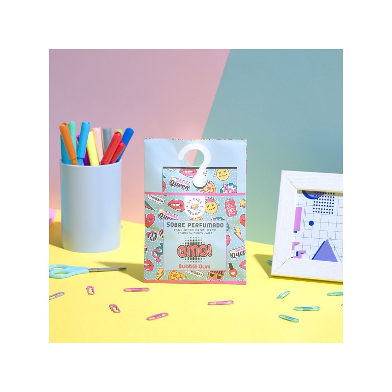 OMG About Pop a coleção vai fazer você trazer à tona o lado mais bandido e a vontade de se divertir. Com um formato bem colorido, os envelopes perfumados podem ser pendurados e perfumados em armários, gavetas ou espaços fechados.