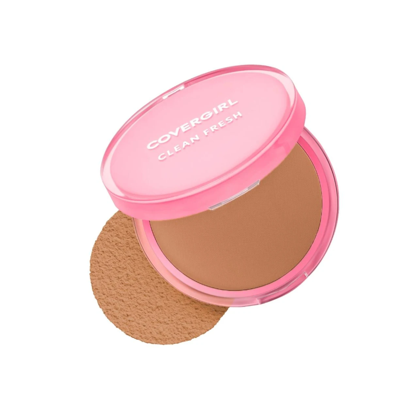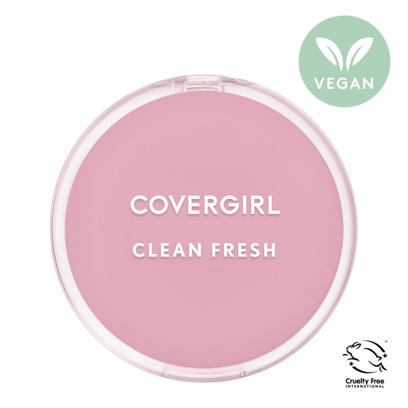 COVERGIRL Clean Fresh Pressed Powder. Este pó facial sem talco é formulado com pó de tapioca e aloe vera para absorver a oleosidade e manter o brilho sob controle. Este pó de fixação 100% vegano torna os poros menos visíveis, para que a pele pareça e fique macia. Aplique-o em movimento rapidamente com o puff de espuma vegana incluído. O pó compacto de cobertura total