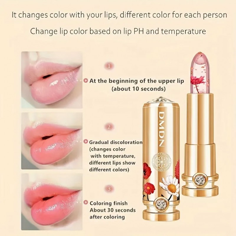 Fórmula Nutritiva: Nosso protetor labial ajuda a cuidar de seus lábios. O batom gelatinoso de flores contém ingredientes hidratantes, pode prevenir eficazmente os lábios rachados e nutrir os lábios.