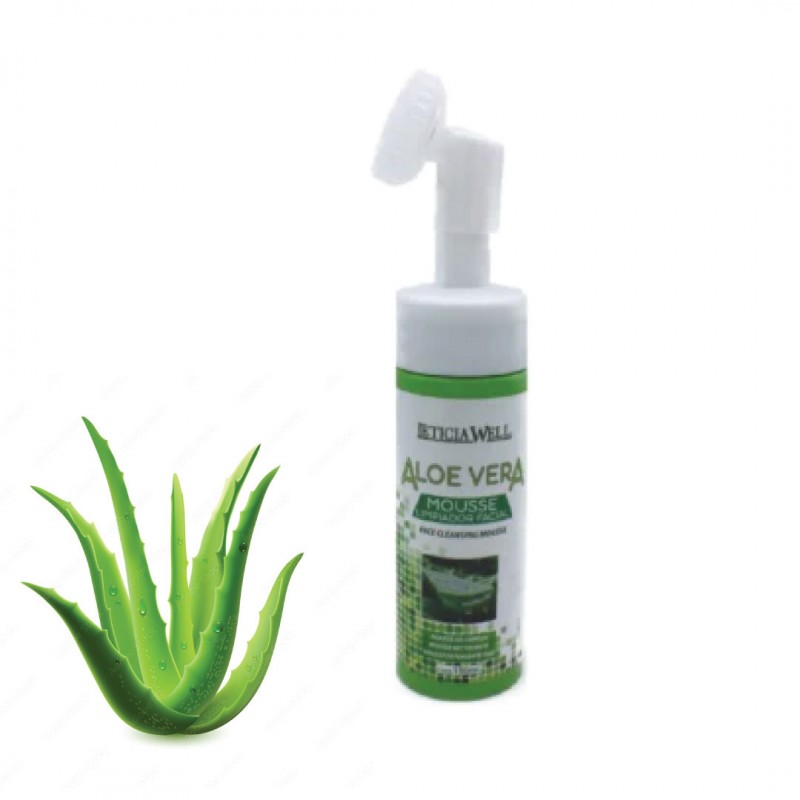 Espuma mousse de limpeza facial com aloe vera e pincel de silicone com cerdas elásticas, para massagear suavemente a pele e remover vestígios de maquiagem, mantendo a pele limpa, brilhante e hidratada.