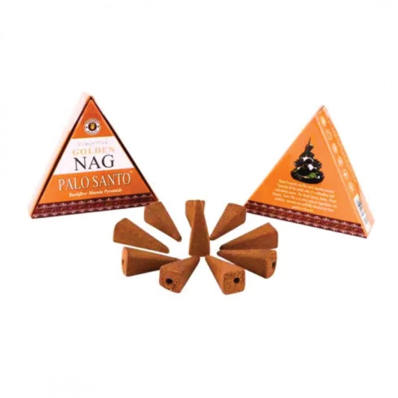 Cones Masala Backflow em forma de pirâmide, e cada pacote individual contém 10 cones. A caixa triangular certamente cativará a atenção.