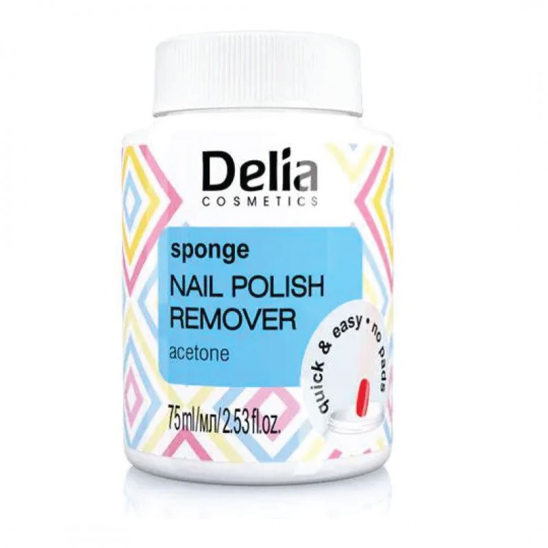 Esponja removedor de esmalte de acetona Delia é um prático e inovador removedor de verniz, fácil de usar com uma esponja.