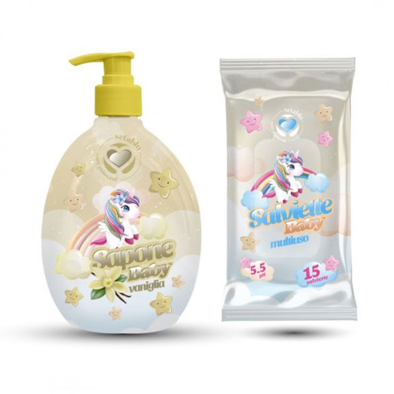 Gel banho bébe Unicornio + Toalhitas -Baunilha