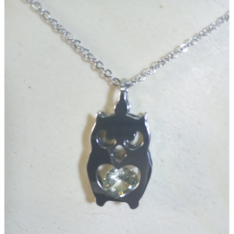 Colar com corrente com Coruja com Brilhante - Prateado