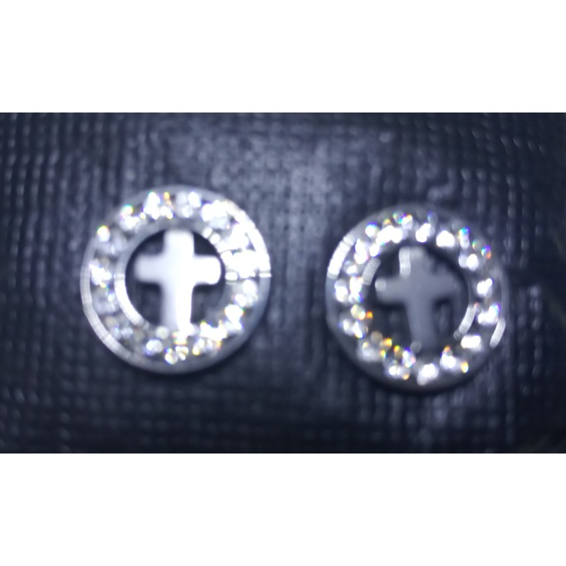 Brincos cruz com circulo com brilhantes - prateado